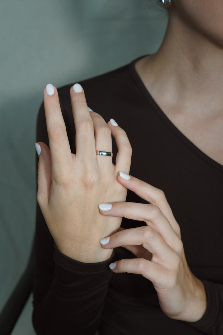 Argolla confort de oro blanco de 4 mm de 10k, con acabado pulido y diseño clásico. Su interior suavemente curvado ofrece un ajuste cómodo para el uso diario, combinando elegancia atemporal y practicidad en una pieza pensada para acompañarte todos los días.