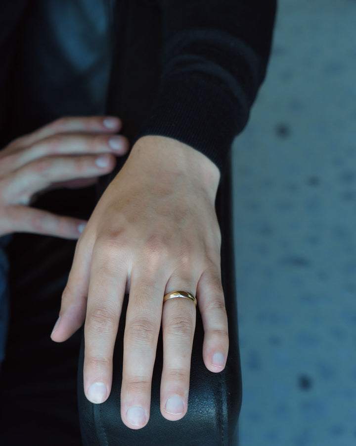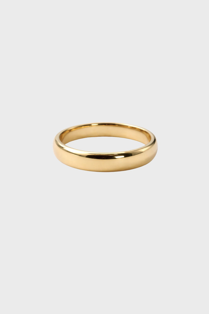 Argolla lisa media caña de oro amarillo de 10K, con ancho de 4.5 mm y acabado pulido brillante. Su perfil suavemente curvado ofrece un diseño clásico y cómodo, ideal para quienes buscan una pieza elegante, atemporal y perfecta para el uso diario.